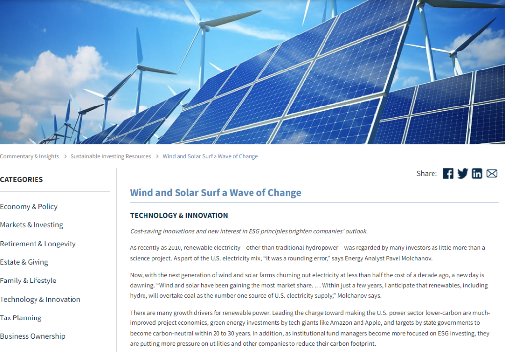 This spotlight campaign on sustainability for Raymond James required a video script, interviews with subject experts to create ghostwritten articles, headline writing and working with a designer to create an infographic. It was featured as sponsored content in major news outlets, including the Washington Post.